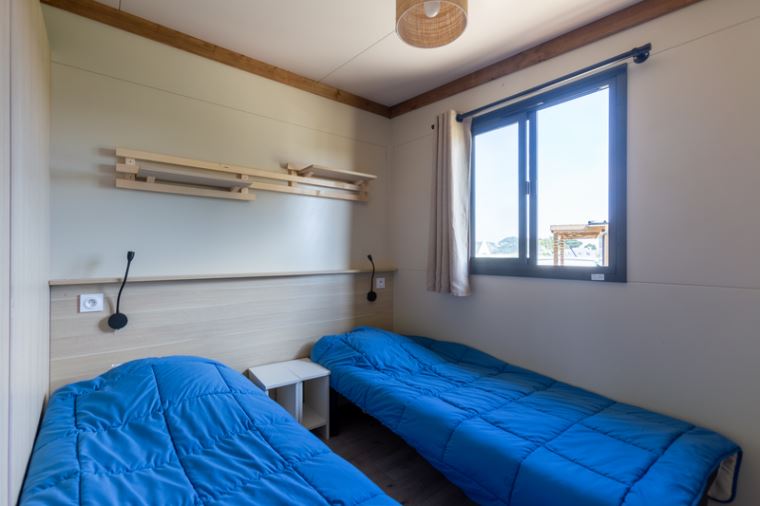 Chambre n°2 et n°3 : 2 lits simples côte à côte ou superposés avec oreillers et couettes fournis.