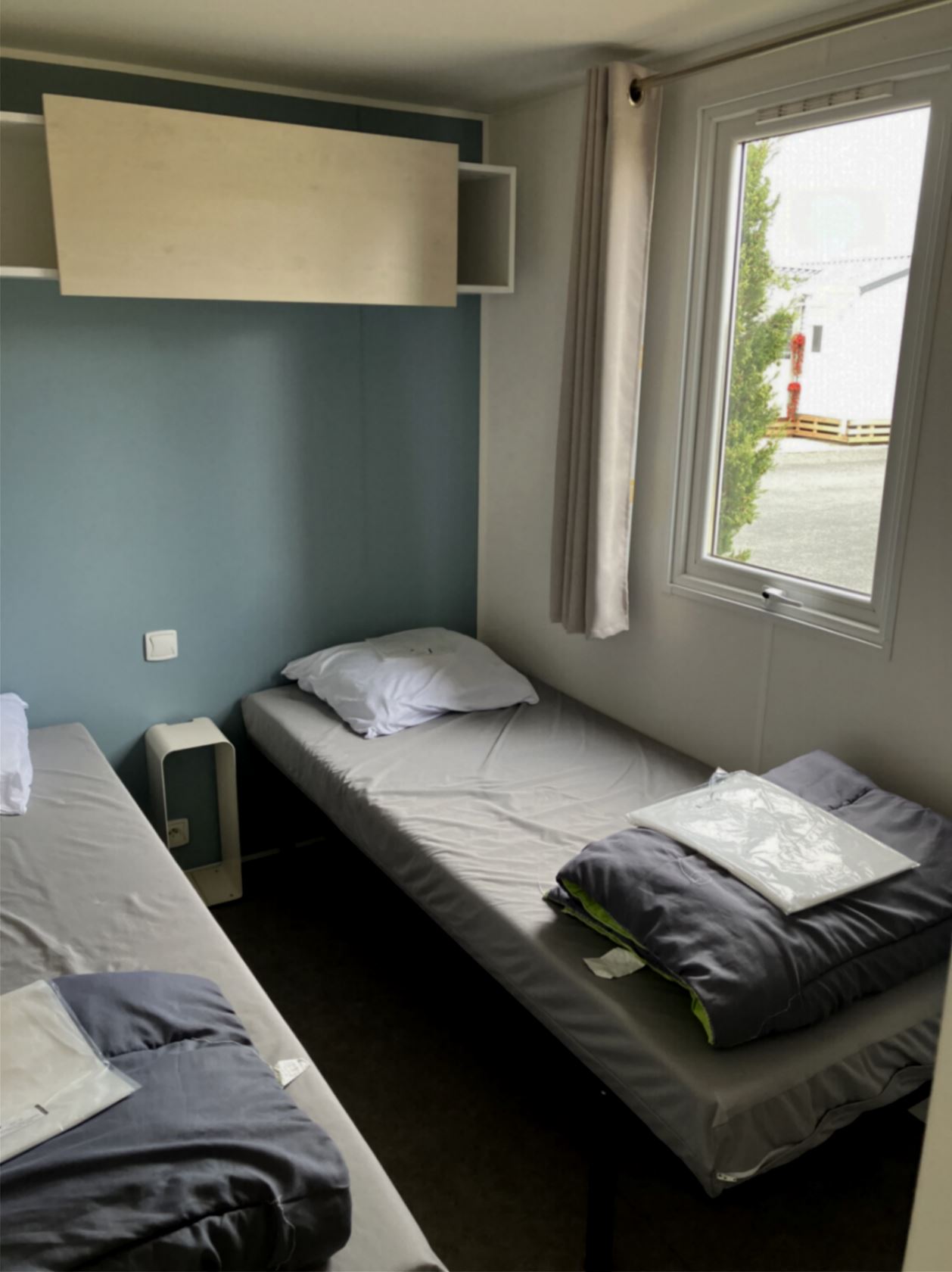Chambre n°2 et n°3 : 2 lits simples (90×190) côte à côte avec oreillers et couettes et/ou couvertures fournis.